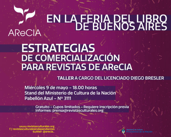 Por sexto año consecutivo, la Asociación de Revistas Culturales Independientes de Argentina (AReCIA) participa de la Feria Internacional del Libro de Buenos Aires y durante la segunda semana de mayo realizará una serie de actividades, charlas, intervenciones y talleres como una forma visibilizar la realidad del sector, sus necesidades y el trabajo que vienen desarrollando desde hace tiempo unas 200 publicaciones de todo el país.
