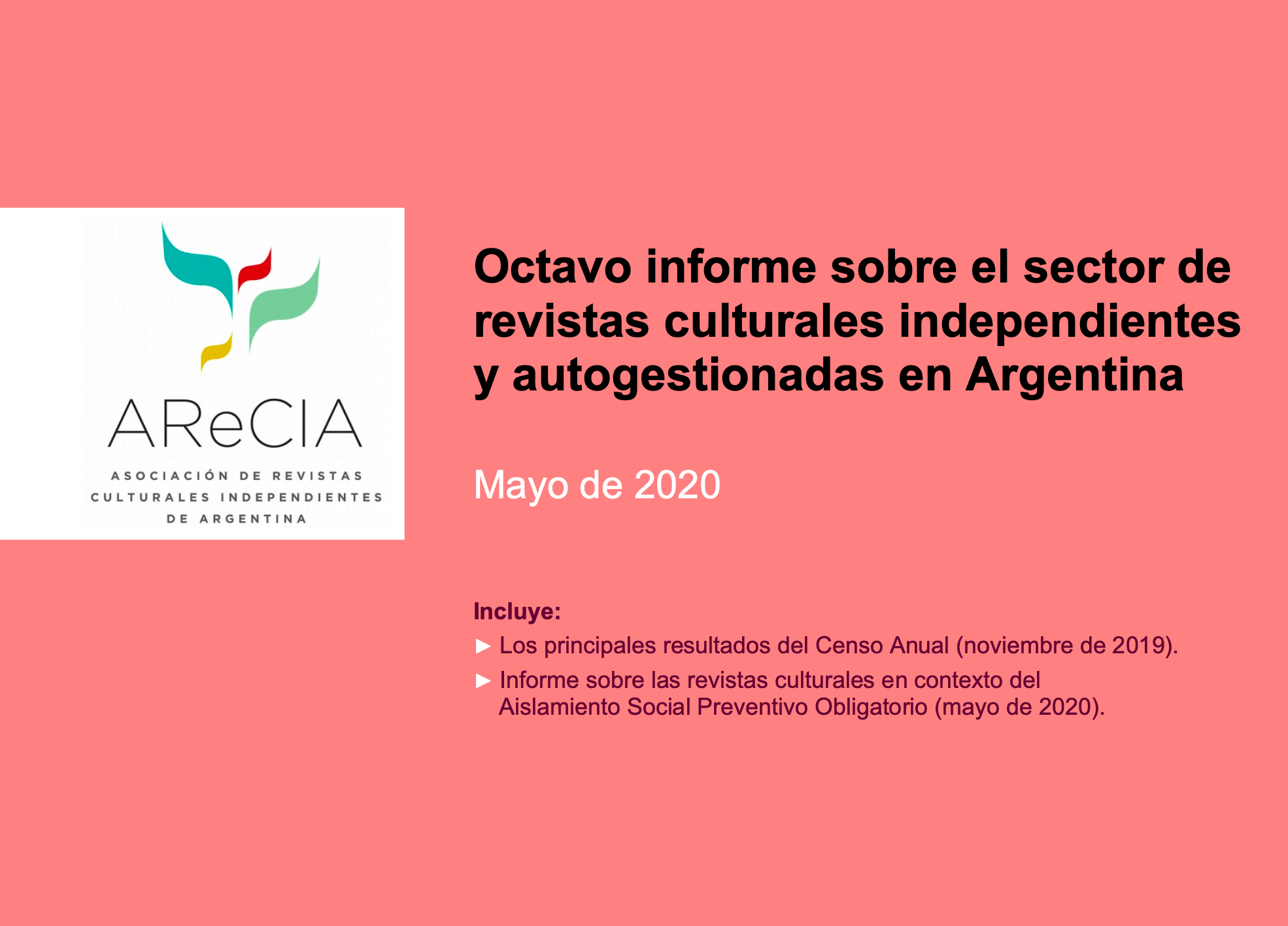 Por sexto año consecutivo, la Asociación de Revistas Culturales e Independientes de Argentina (AReCIA) publica un exhaustivo y completo informe sobre la situación de las publicaciones autogestivas y comunitarias de todo el país que permite trazar un panorama pormenorizado acerca de la realidad que atraviesa el sector en la actualidad.